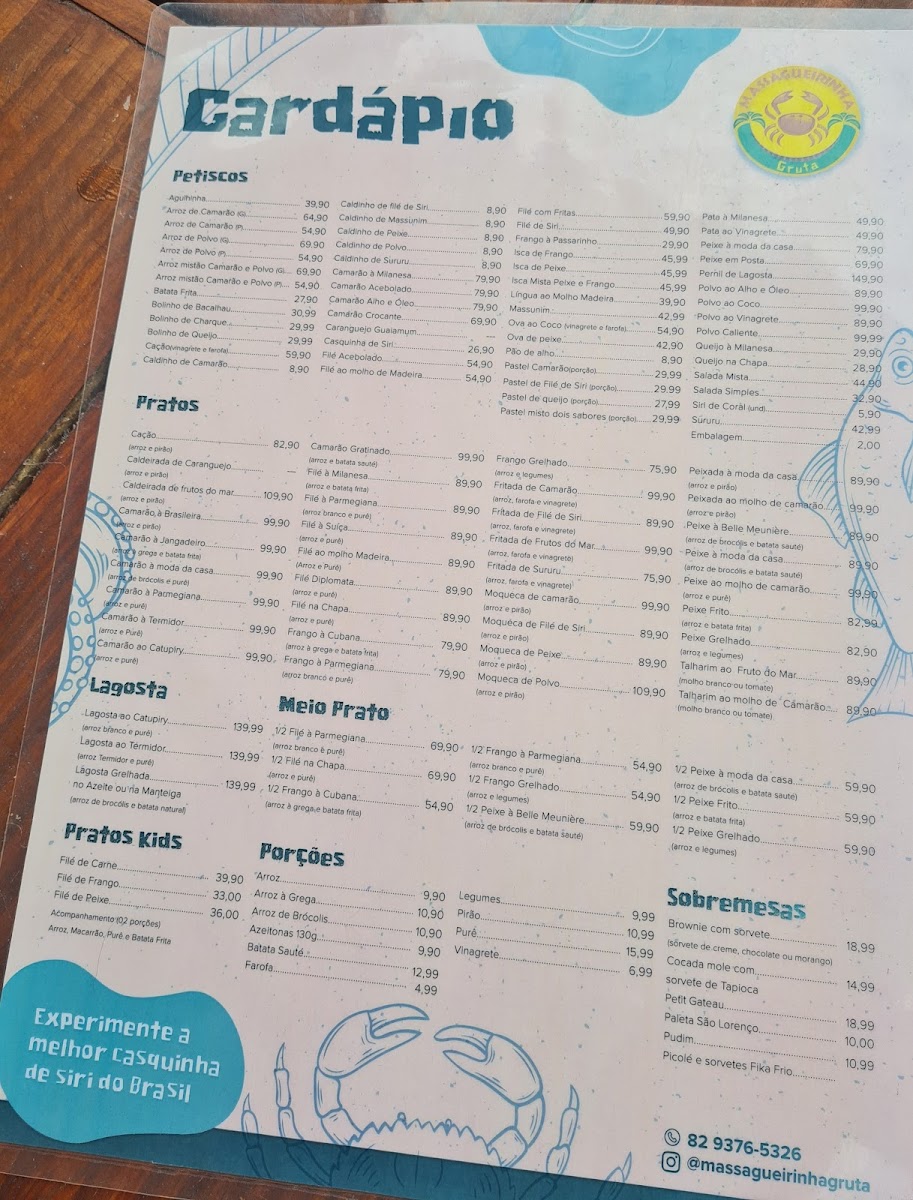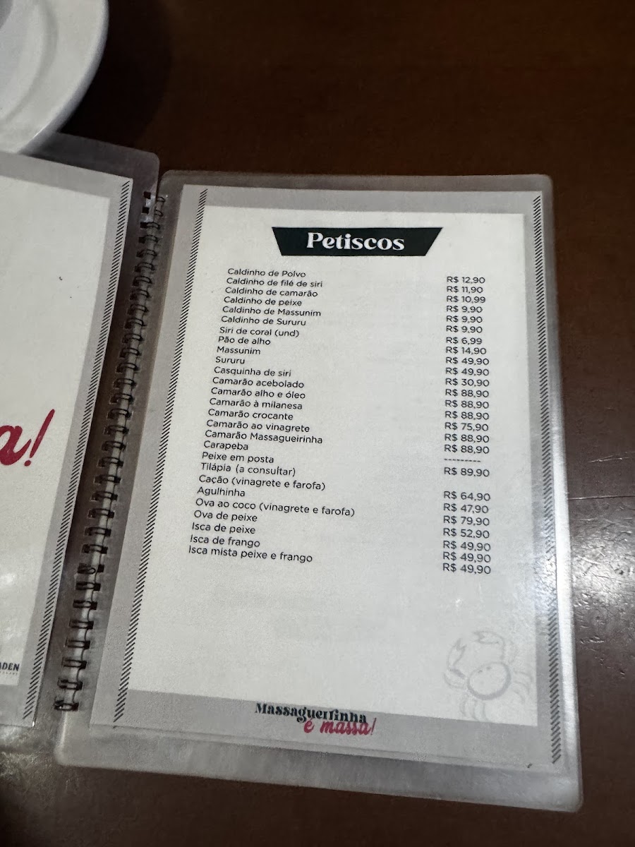 The menu at Massagueirinha Gruta offers a satisfying showcase of regional flavors, with a clear emphasis on fresh seafood and comforting Brazilian classics. Standout dishes like the Casquinha de Siri ao Forno and Fritada de Siri highlight the restaurant’s expertise with crab, delivering rich, well-seasoned bites that feel both authentic and indulgent. The Moqueca de Peixe stands out as a must-try, bringing together delicate fish, aromatic spices, and a flavorful broth that captures the essence of coastal cuisine. Complementing the food, simple additions like Coca Cola provide a familiar refreshment, while condiments such as Pimenta allow diners to adjust the heat to their liking. Overall, the menu feels cohesive and thoughtfully curated, offering both variety and a strong sense of place, making it a memorable dining experience for anyone seeking traditional Brazilian seafood dishes.